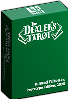 This 78-card tarot deck was used by D. Brad Talton Jr. to design and test the 22 games in the Dealer's Tarot. It is available in a limited run, signed and numbered, for backers of the Dealer's Tarot Kickstarter project.